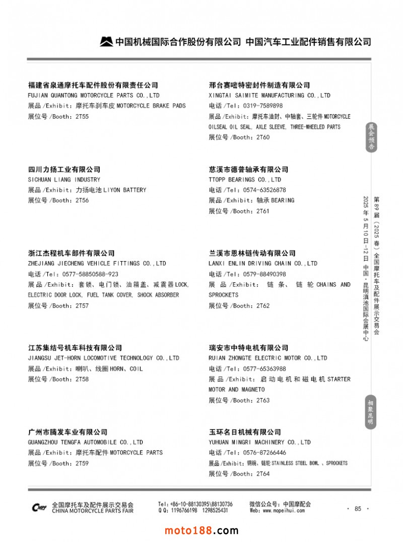內69-188 第88屆(2024秋)全國摩托車及配件展示交易會-廣州站參展企業信息