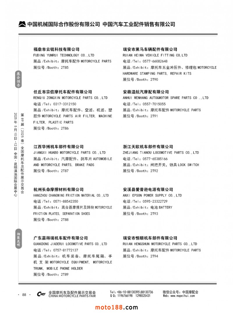 內(nèi)69-188 第88屆(2024秋)全國摩托車及配件展示交易會-廣州站參展企業(yè)信息