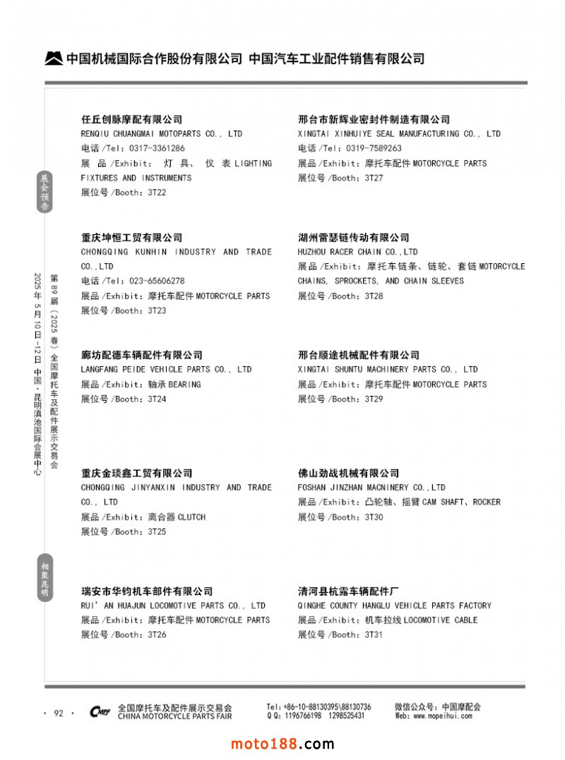 內69-188 第88屆(2024秋)全國摩托車及配件展示交易會-廣州站參展企業信息