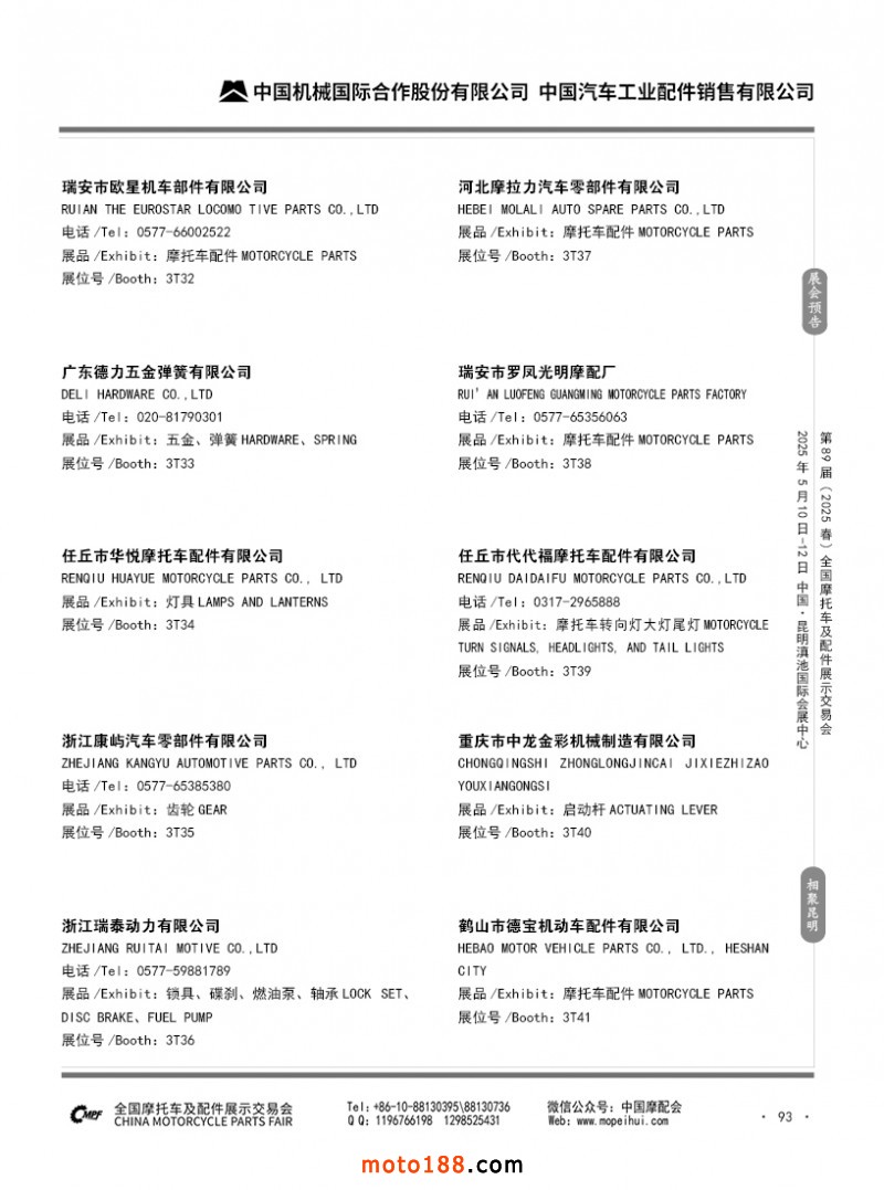內69-188 第88屆(2024秋)全國摩托車及配件展示交易會-廣州站參展企業信息