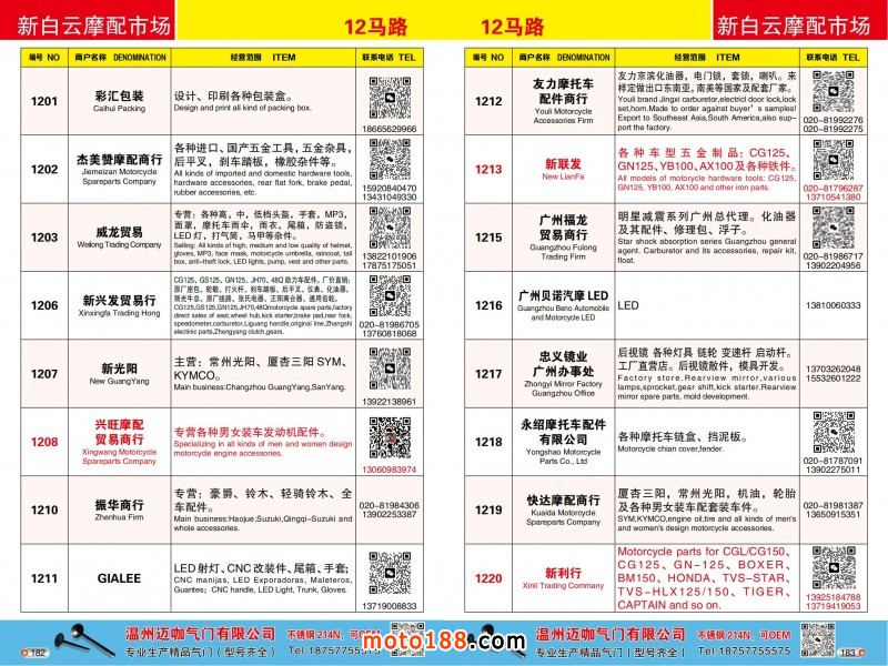 各摩配市場詳細(xì)資料請注冊我們的VIP會員咨詢 電話:0515-88436994 QQ:309362965、842467029、1051652573