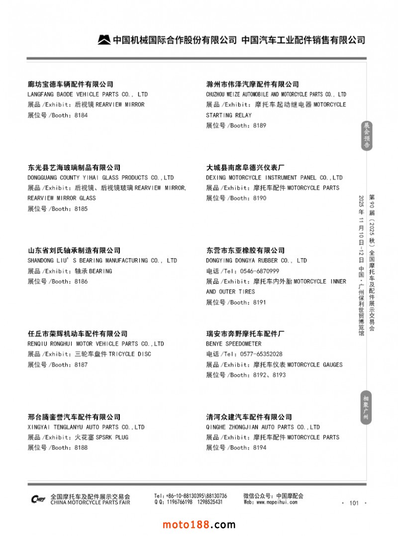 內101 第89屆(2025春)全國摩托車及配件展示交易會-昆明站參展企業信息