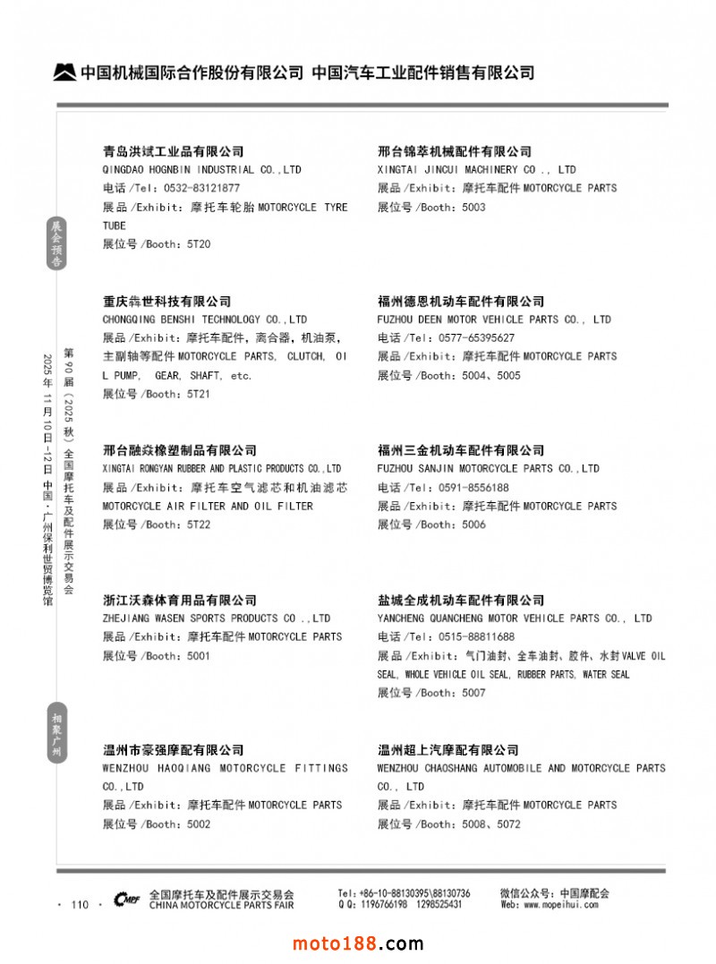 內110 第89屆(2025春)全國摩托車及配件展示交易會-昆明站參展企業信息
