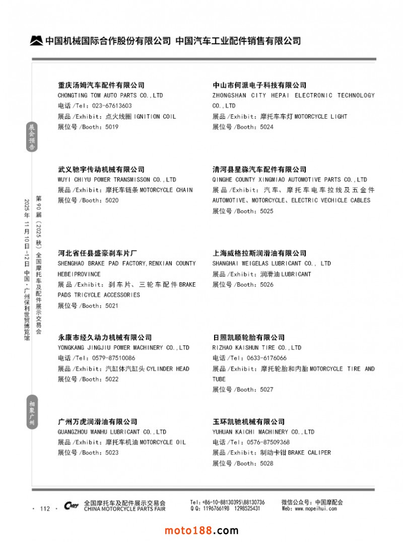 內112 第89屆(2025春)全國摩托車及配件展示交易會-昆明站參展企業信息