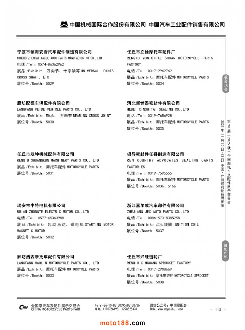 內113 第89屆(2025春)全國摩托車及配件展示交易會-昆明站參展企業信息