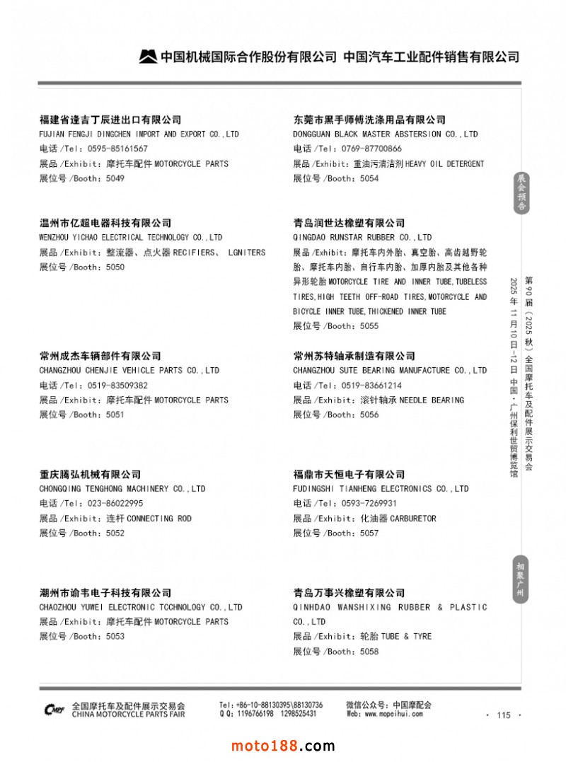 內115 第89屆(2025春)全國摩托車及配件展示交易會-昆明站參展企業信息