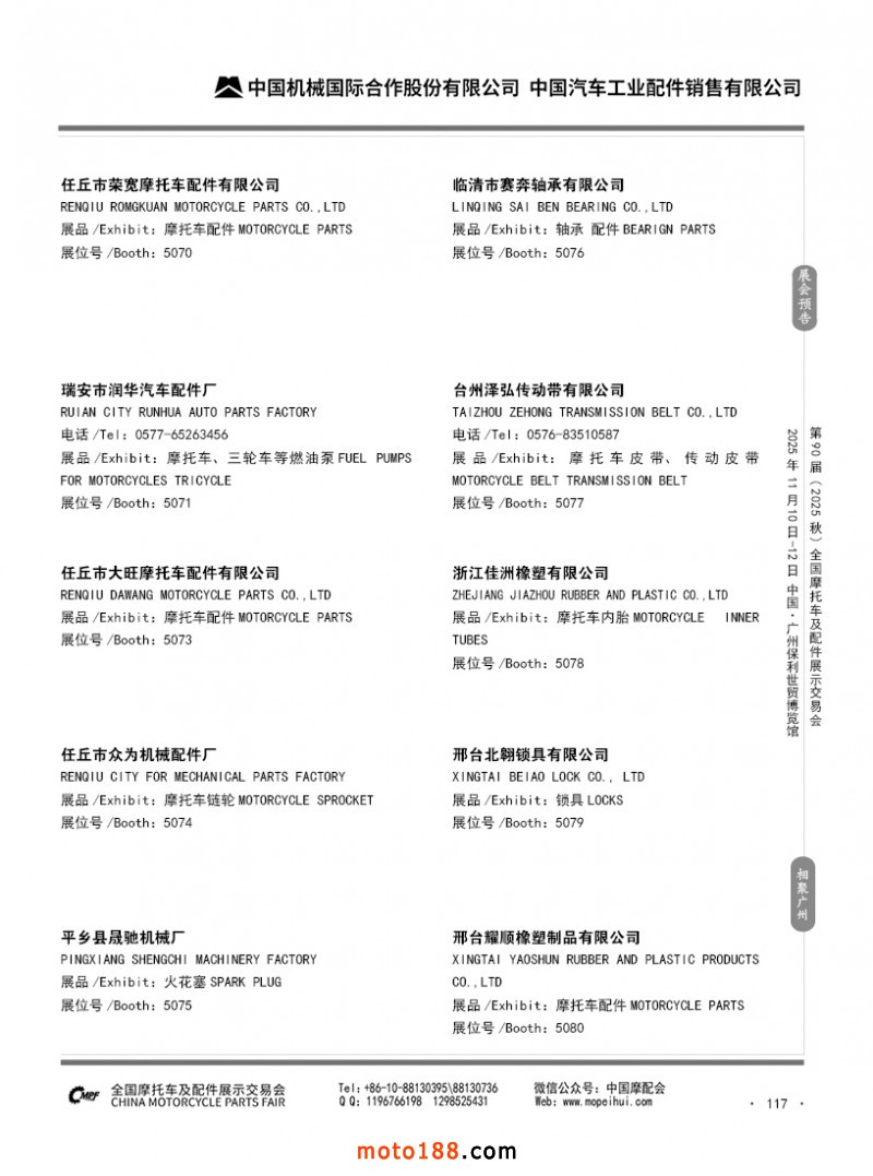 內(nèi)117 第89屆(2025春)全國摩托車及配件展示交易會-昆明站參展企業(yè)信息