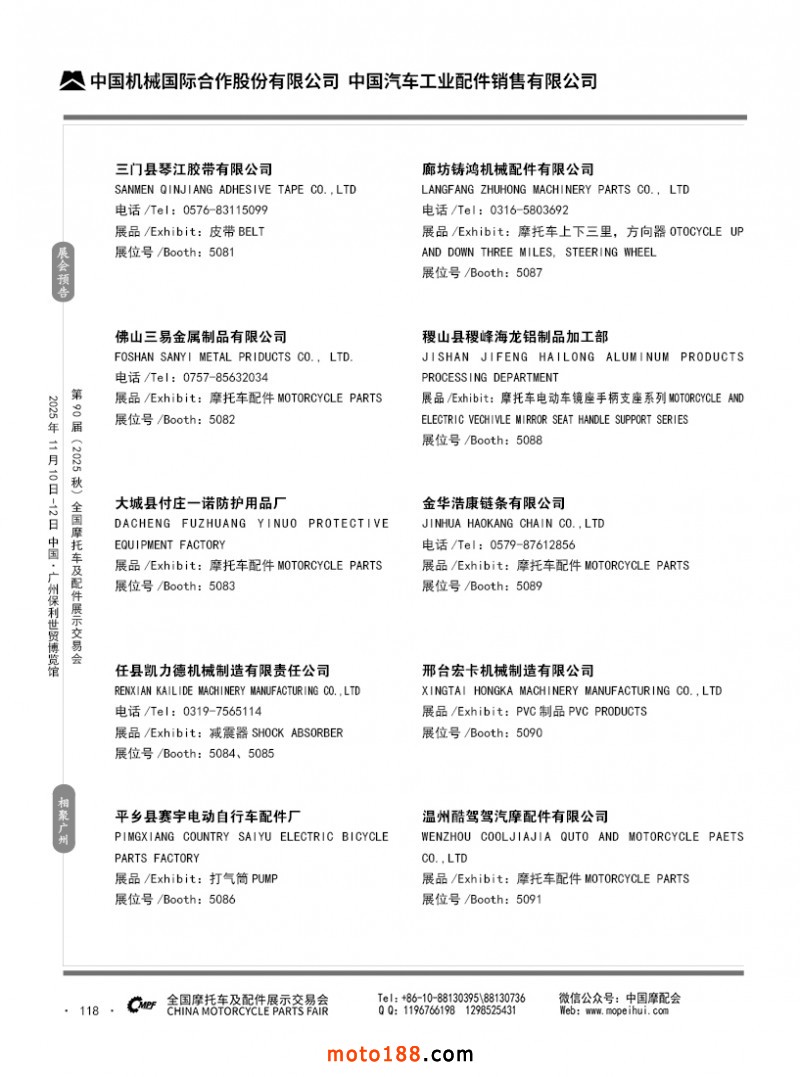 內118 第89屆(2025春)全國摩托車及配件展示交易會-昆明站參展企業信息