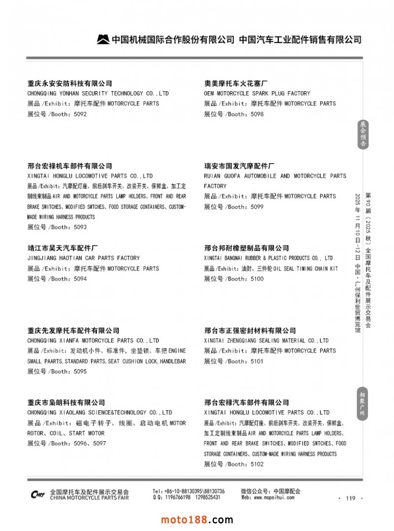 內119 第89屆(2025春)全國摩托車及配件展示交易會-昆明站參展企業信息