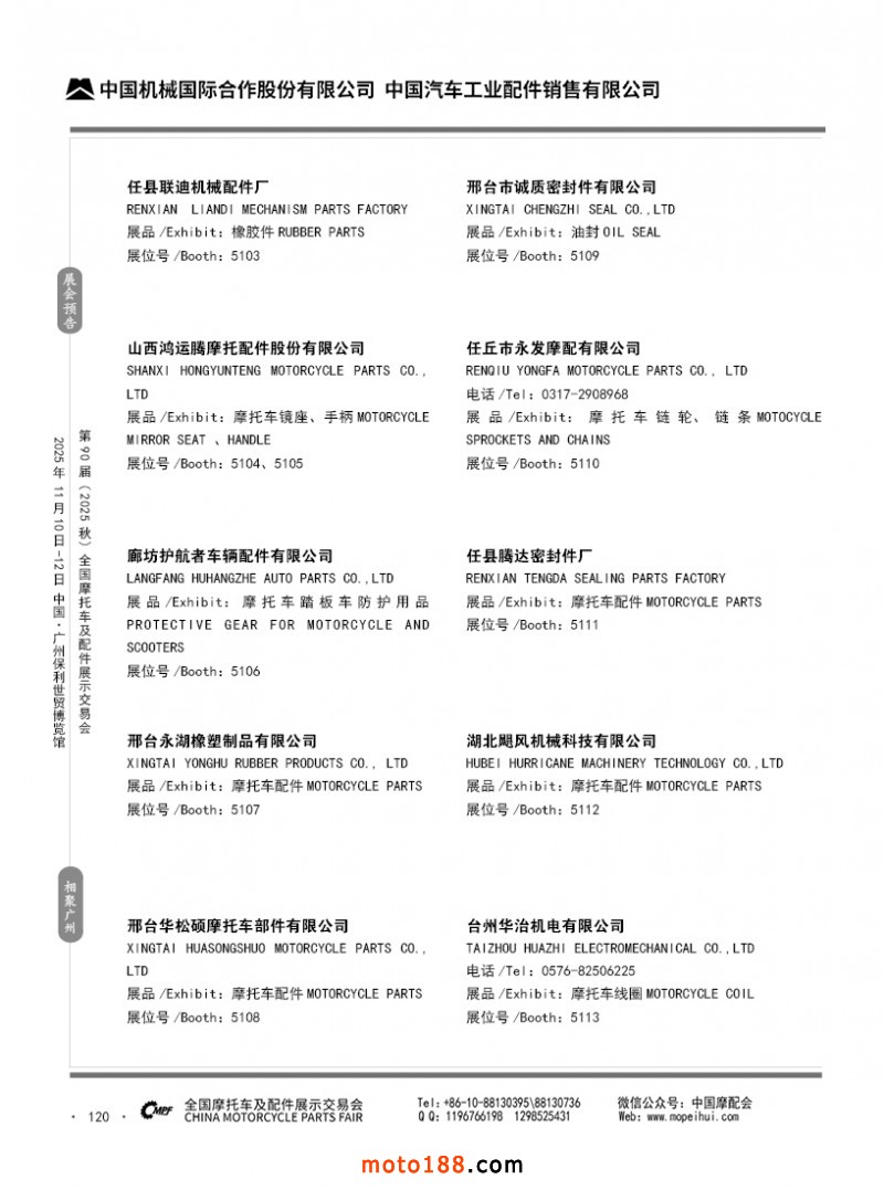 內120 第89屆(2025春)全國摩托車及配件展示交易會-昆明站參展企業信息