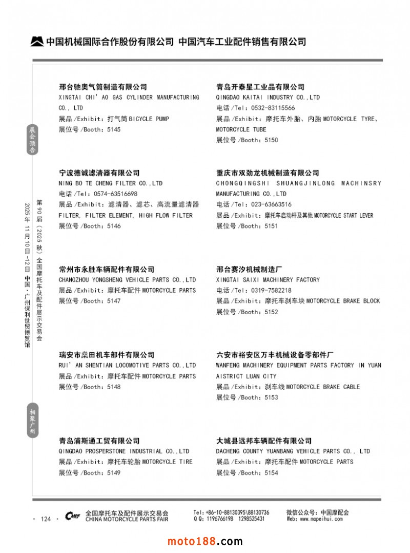 內124 第89屆(2025春)全國摩托車及配件展示交易會-昆明站參展企業信息