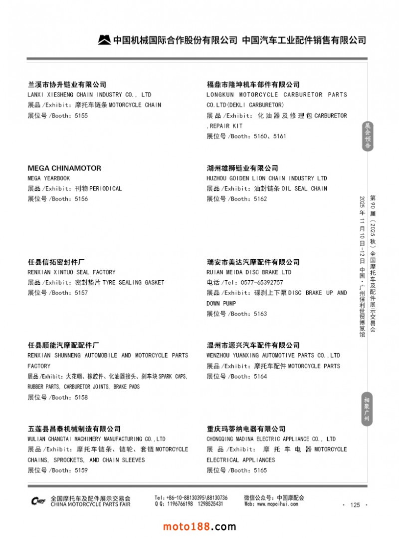 內(nèi)125 第89屆(2025春)全國摩托車及配件展示交易會-昆明站參展企業(yè)信息
