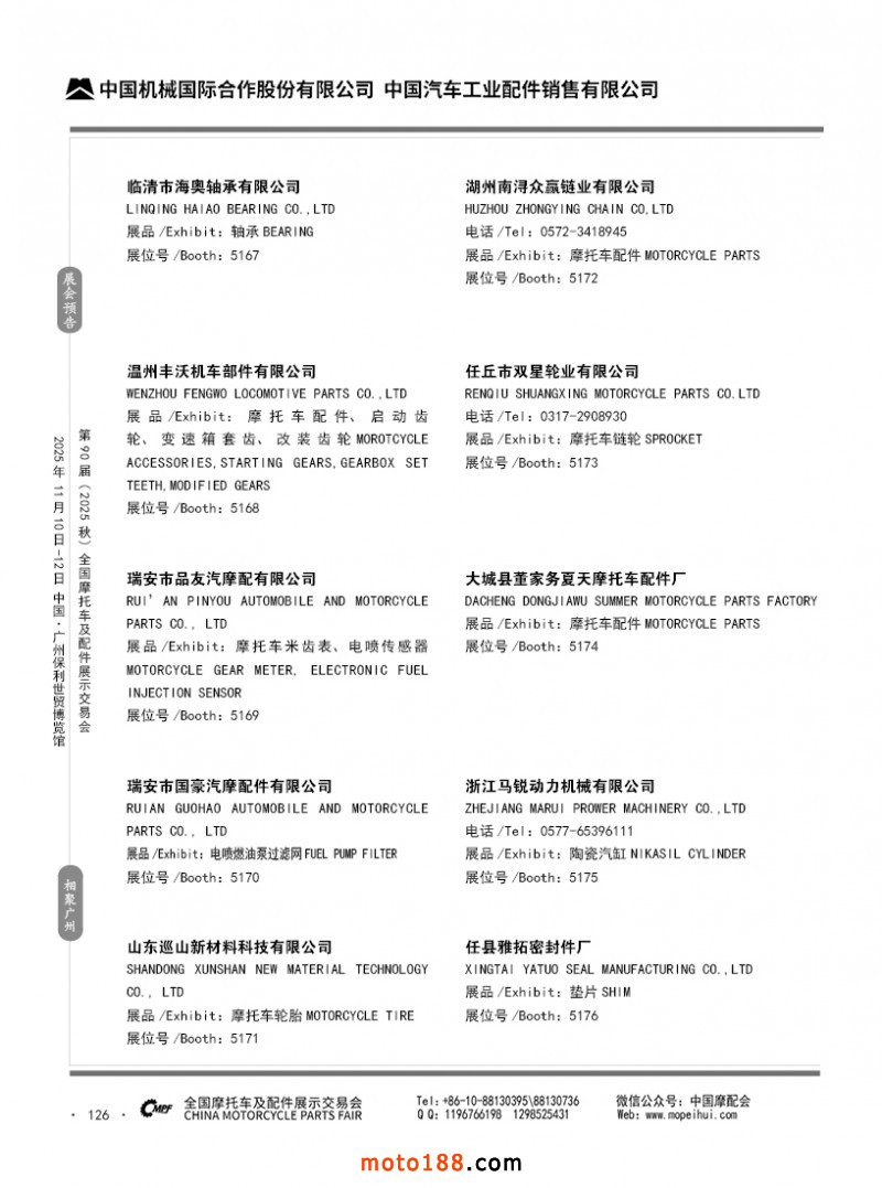 內(nèi)126 第89屆(2025春)全國摩托車及配件展示交易會-昆明站參展企業(yè)信息