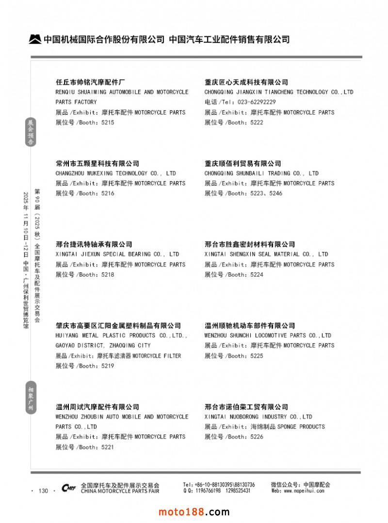 內130 第89屆(2025春)全國摩托車及配件展示交易會-昆明站參展企業信息