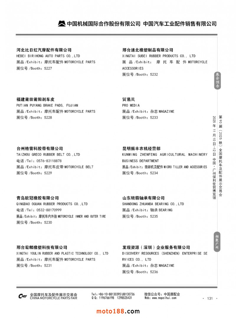 內131 第89屆(2025春)全國摩托車及配件展示交易會-昆明站參展企業信息