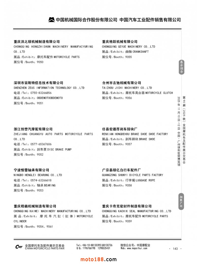 內143 第89屆(2025春)全國摩托車及配件展示交易會-昆明站參展企業信息