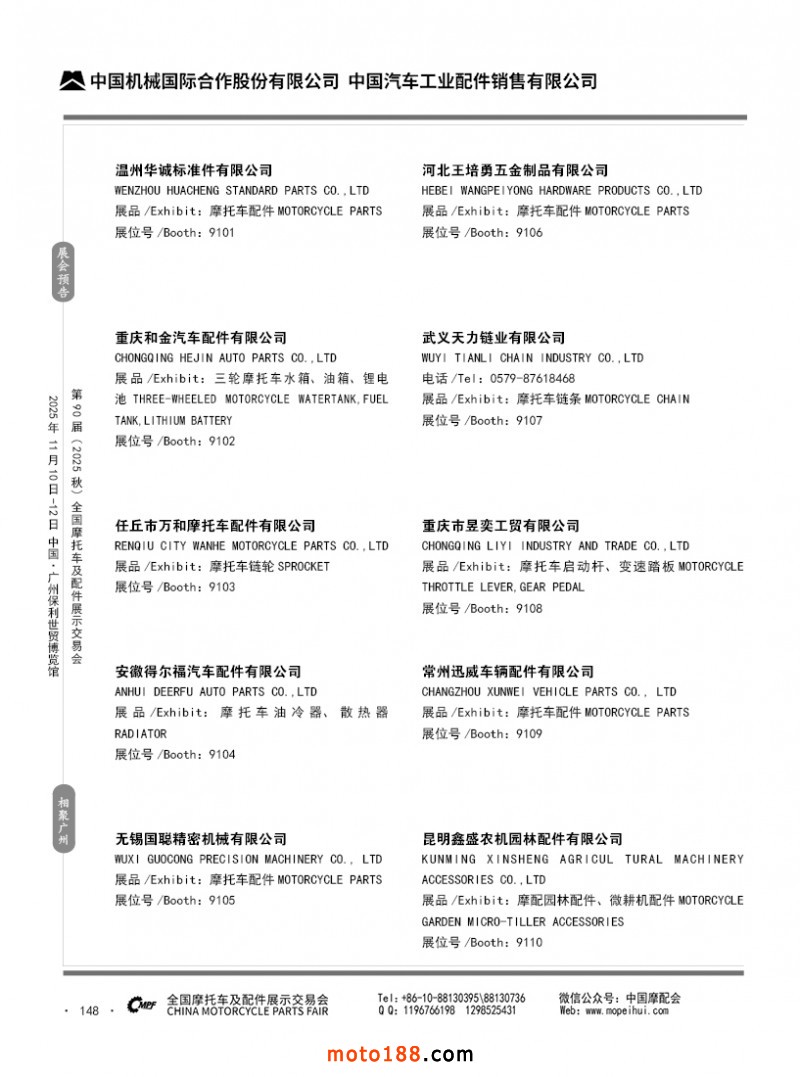 內148 第89屆(2025春)全國摩托車及配件展示交易會-昆明站參展企業信息