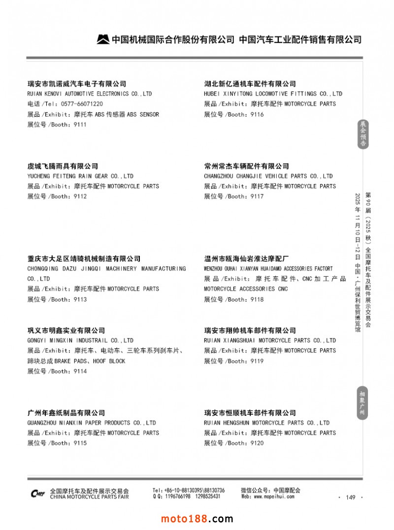 內149 第89屆(2025春)全國摩托車及配件展示交易會-昆明站參展企業信息