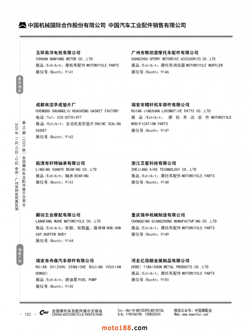 內152 第89屆(2025春)全國摩托車及配件展示交易會-昆明站參展企業(yè)信息