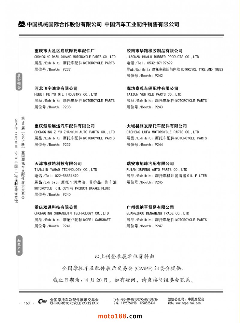 內(nèi)160 第89屆(2025春)全國(guó)摩托車(chē)及配件展示交易會(huì)-昆明站參展企業(yè)信息