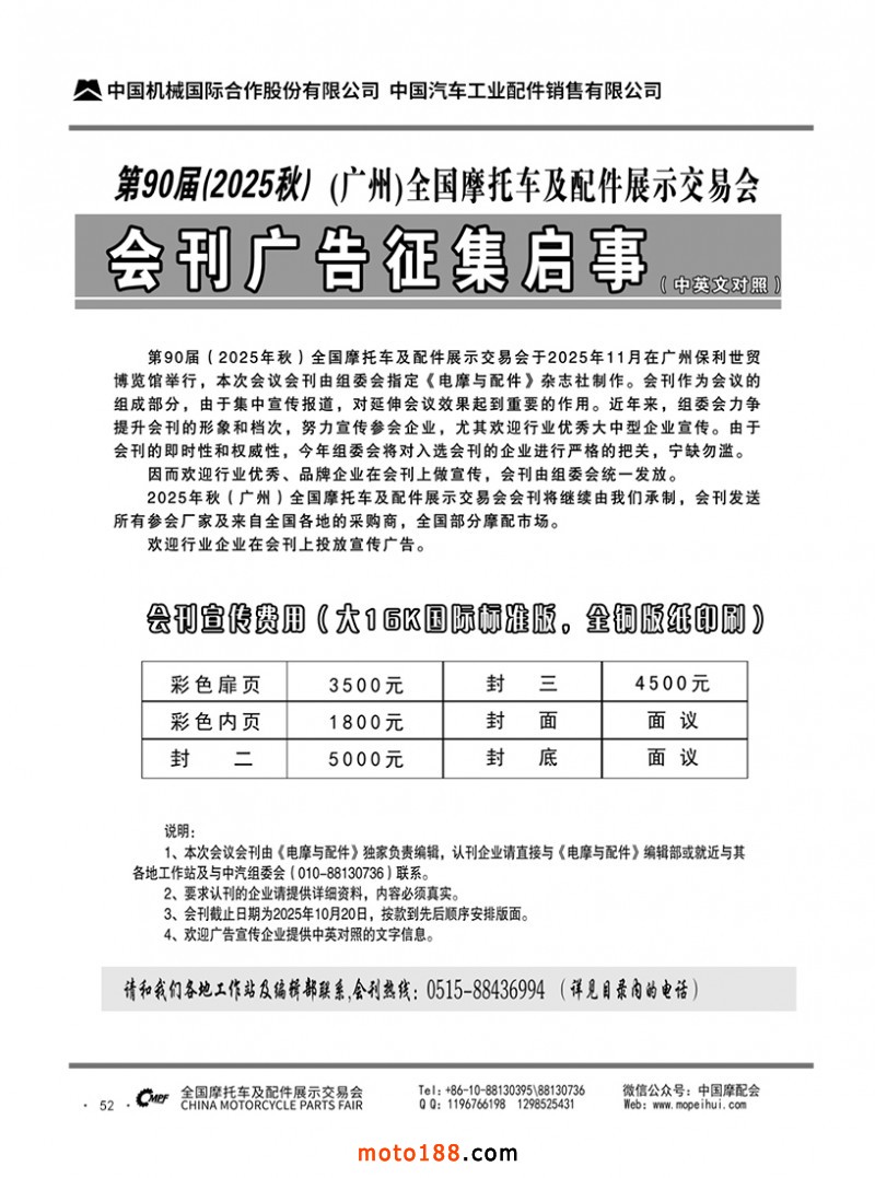 內52 第90屆(2025秋)全國摩托車及配件展示交易會-廣州站會刊征集啟事