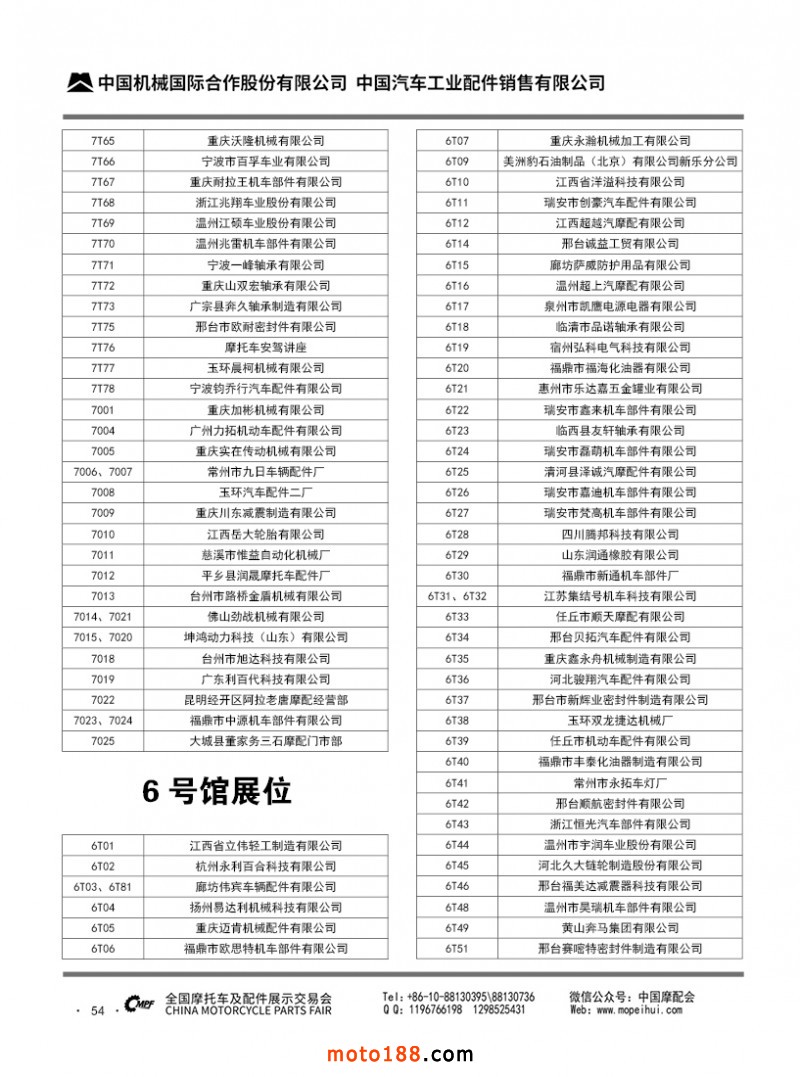 內(nèi)54 第89屆(2025春)全國(guó)摩托車(chē)及配件展示交易會(huì)-昆明站參展單位名錄