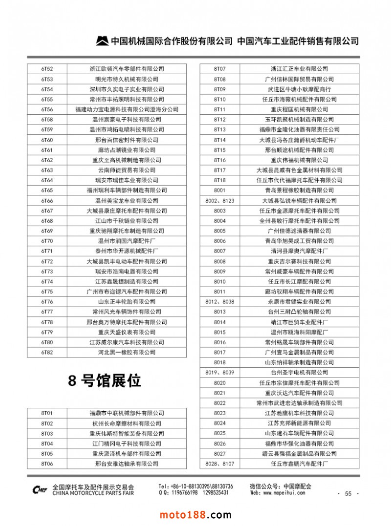內(nèi)55 第89屆(2025春)全國摩托車及配件展示交易會-昆明站參展單位名錄