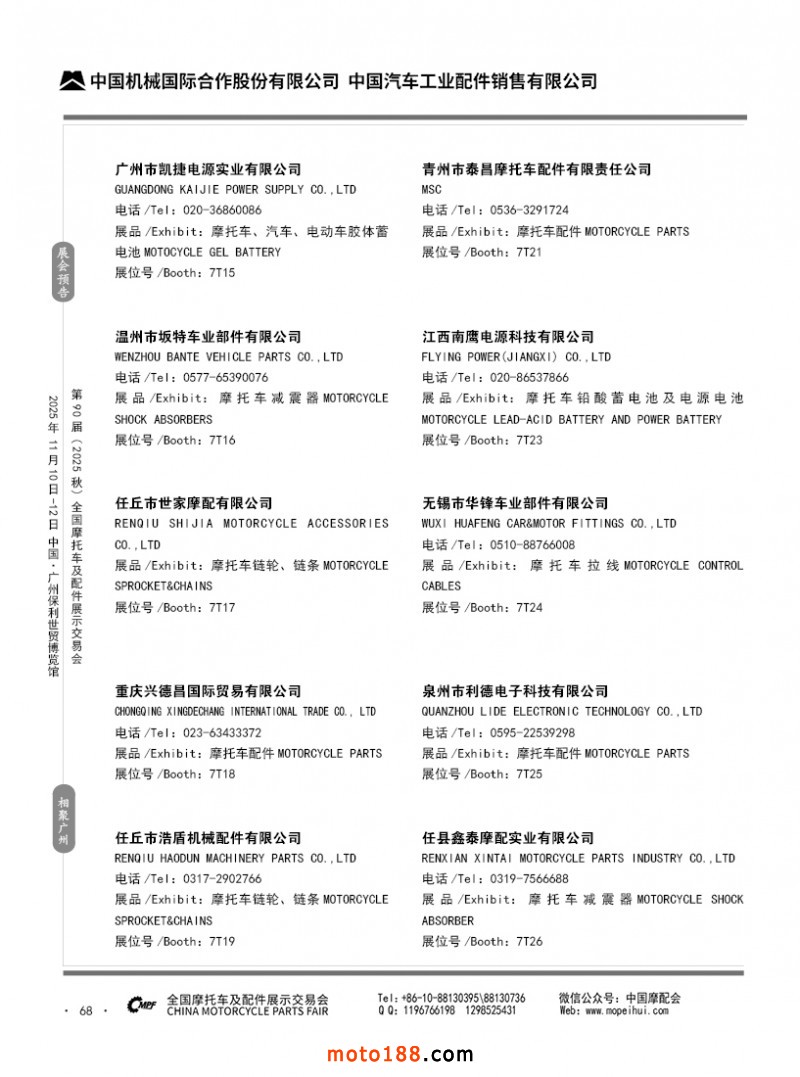內(nèi)68 第89屆(2025春)全國摩托車及配件展示交易會(huì)-昆明站參展企業(yè)信息