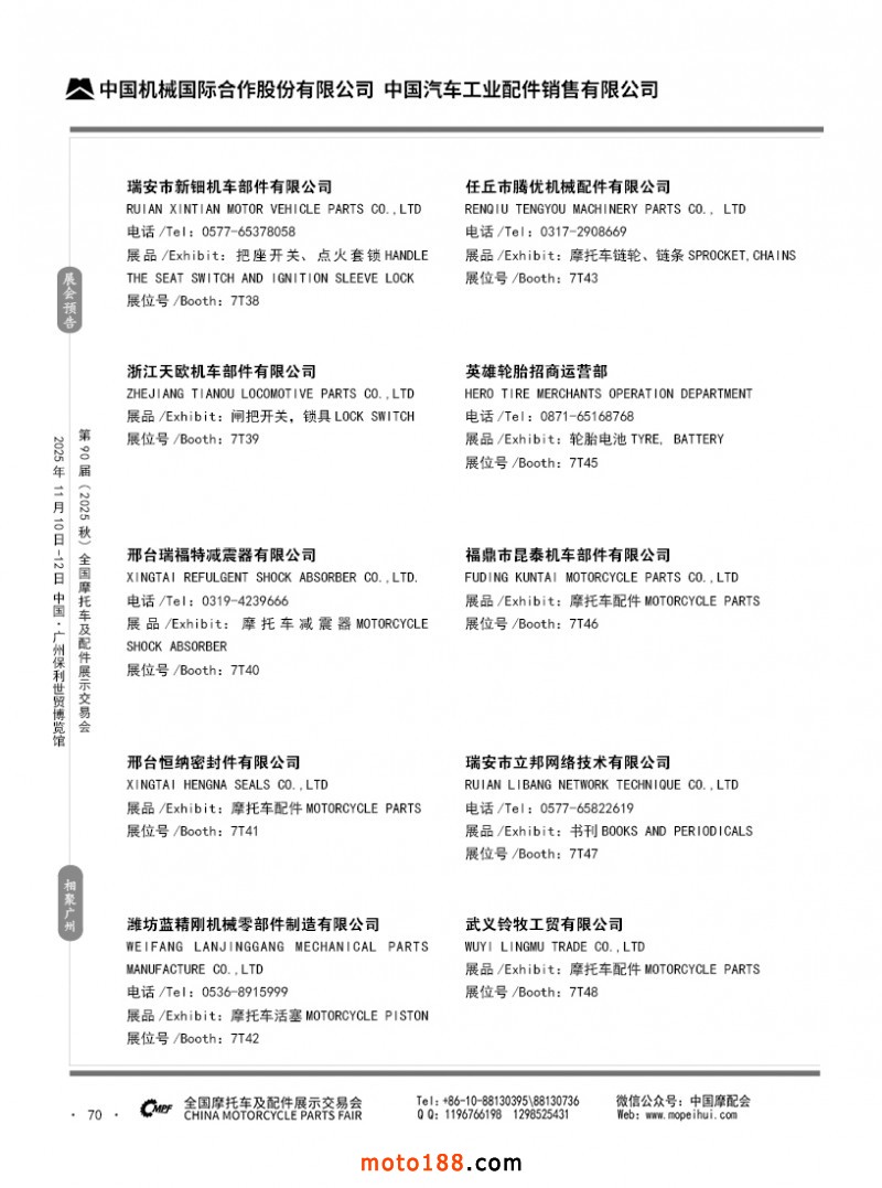 內70 第89屆(2025春)全國摩托車及配件展示交易會-昆明站參展企業信息