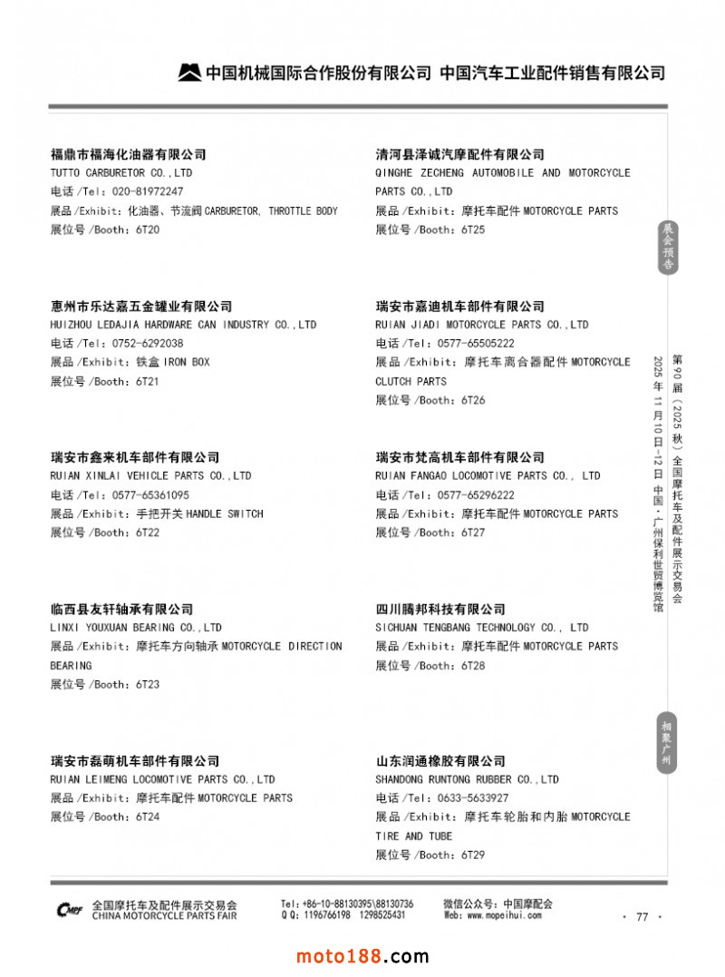 內77 第89屆(2025春)全國摩托車及配件展示交易會-昆明站參展企業信息
