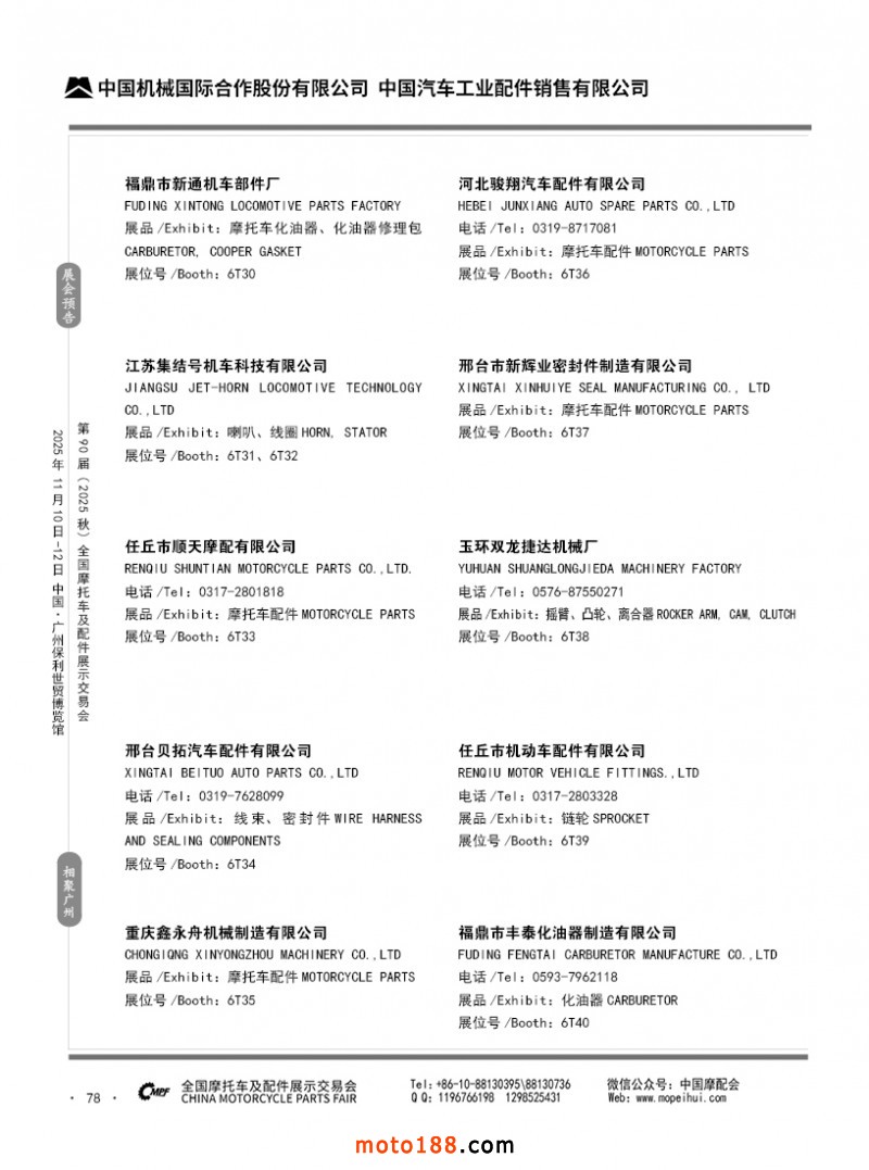 內78 第89屆(2025春)全國摩托車及配件展示交易會-昆明站參展企業信息