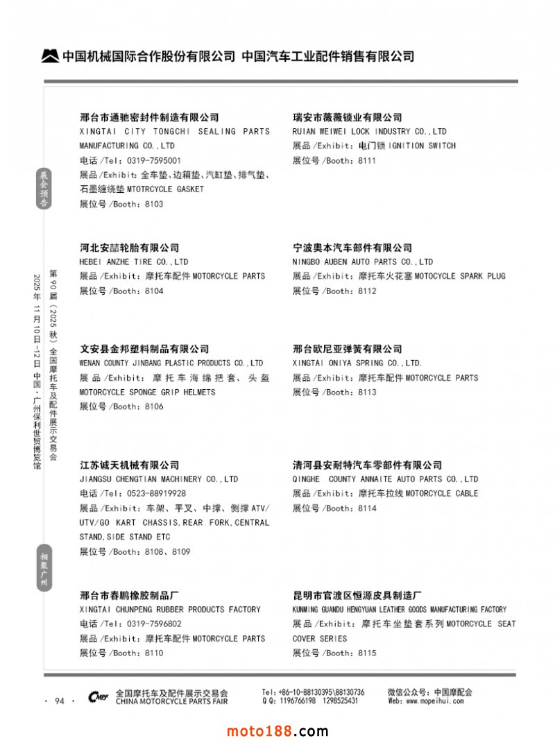 內94 第89屆(2025春)全國摩托車及配件展示交易會-昆明站參展企業信息