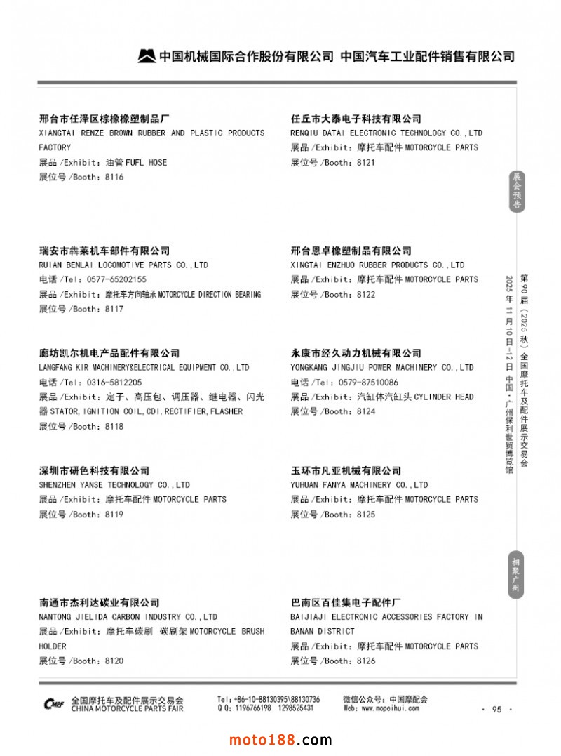 內95 第89屆(2025春)全國摩托車及配件展示交易會-昆明站參展企業信息
