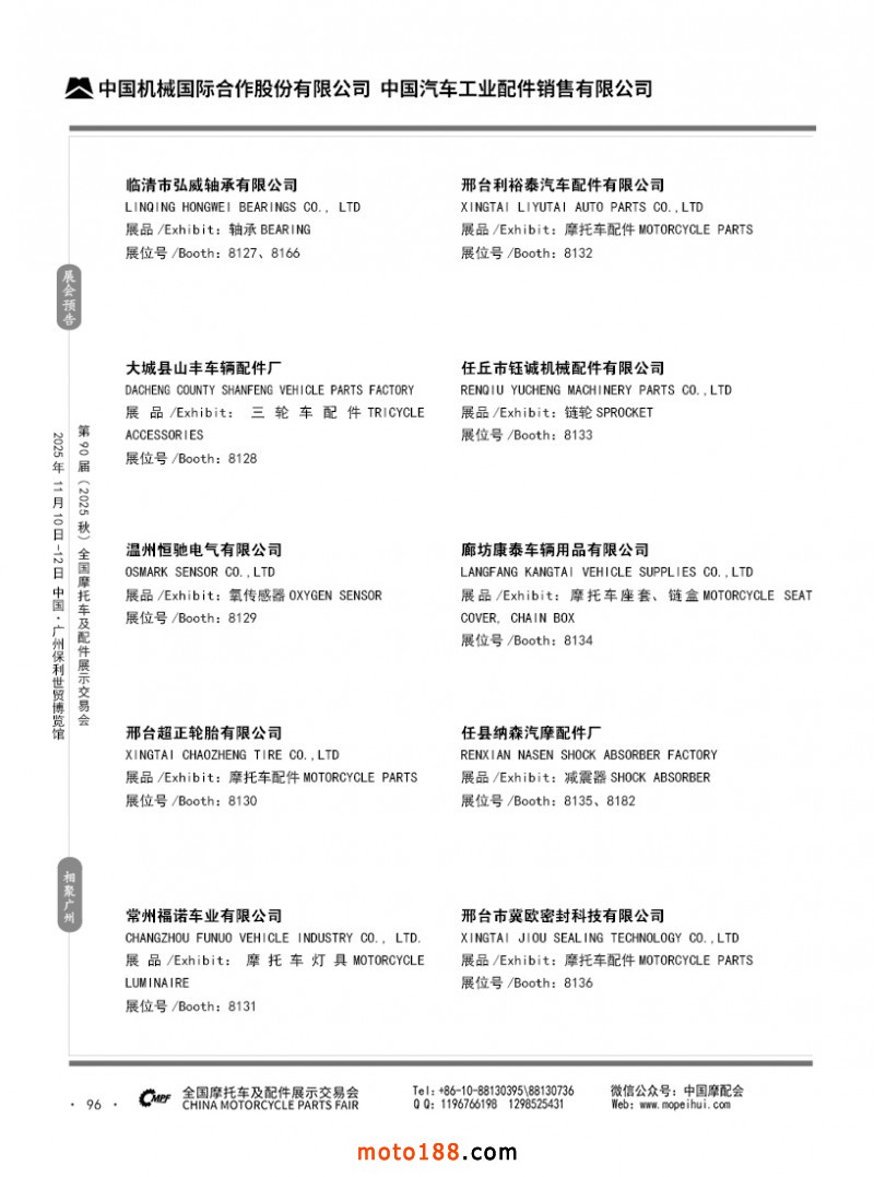 內(nèi)96 第89屆(2025春)全國(guó)摩托車及配件展示交易會(huì)-昆明站參展企業(yè)信息