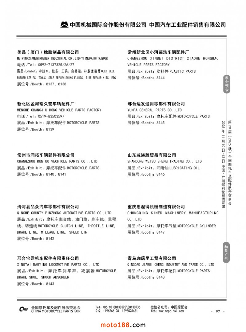 內97 第89屆(2025春)全國摩托車及配件展示交易會-昆明站參展企業信息