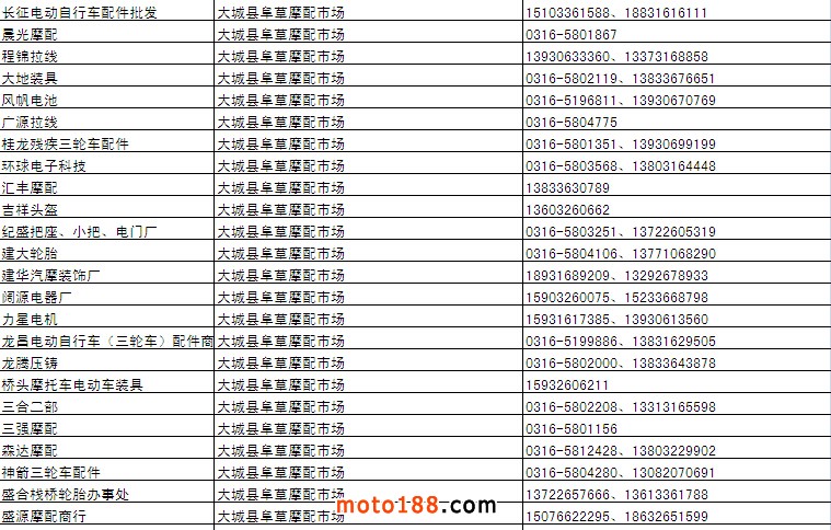 各摩配市場(chǎng)詳細(xì)資料請(qǐng)注冊(cè)我們的VIP會(huì)員咨詢 電話:0515-88436994 QQ:309362965、842467029、1051652573