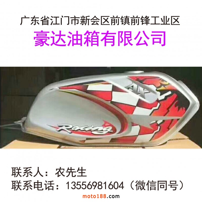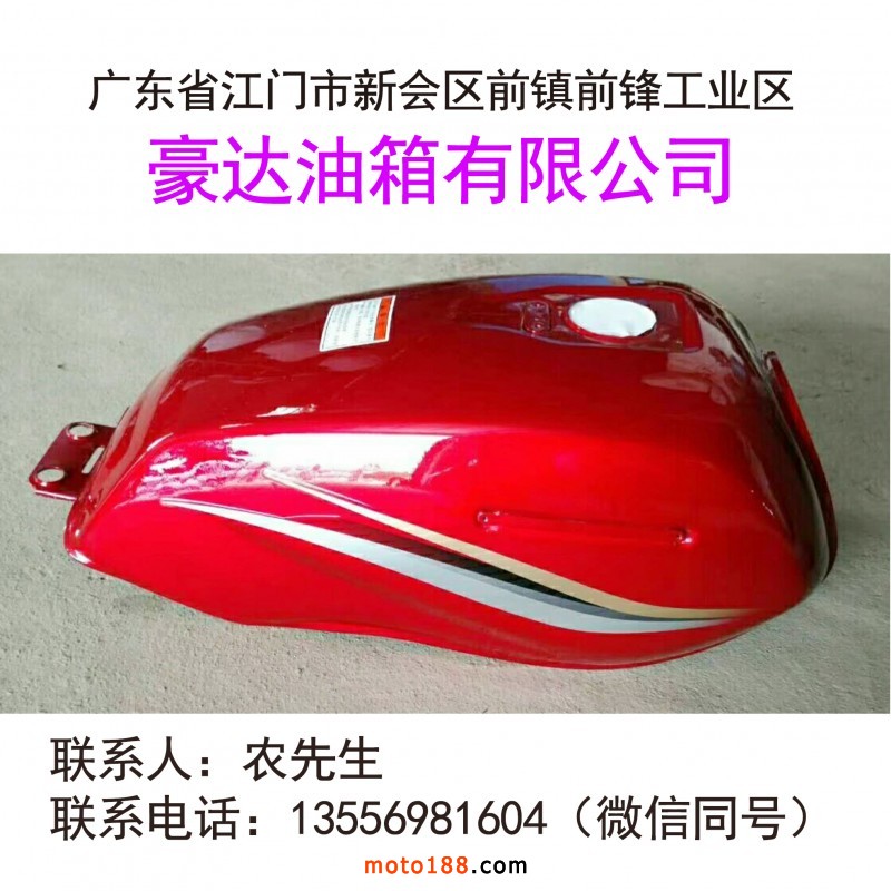 豪達油箱有限公司,本公司主要生產摩托車油箱、主要以貿易出口為主、出口產品銷往、非洲、哥倫比亞、伊朗、墨西哥、秘魯、委內瑞拉、埃及、主要有品種、喜冠、悅冠、AX100一代、AX100二代改型、BM150、CB1一銳彪、牧羊人、CG一代、二代、三代、八代、九代、哈雷油箱、復古油箱、MTR、復古小嘉陵、大越野、輕騎復古歪口太子油箱及各種油箱。地址:
