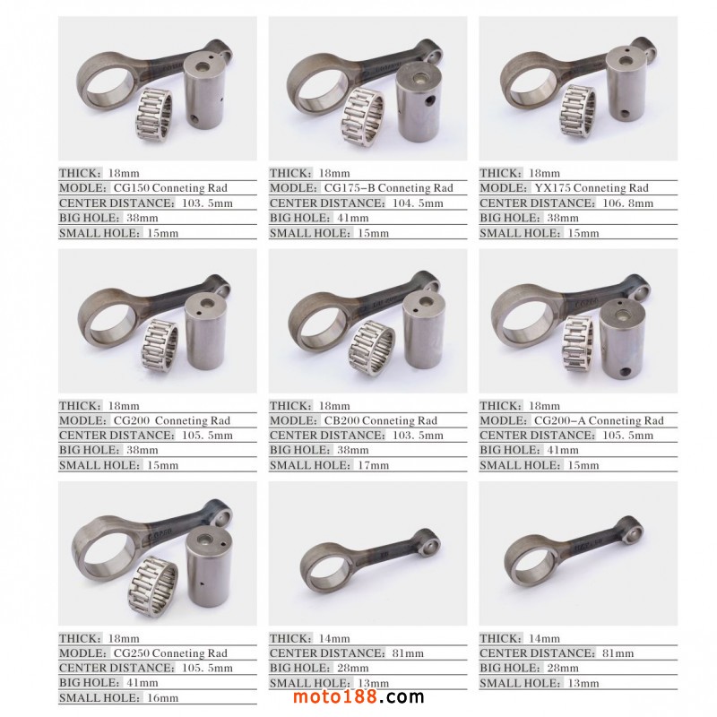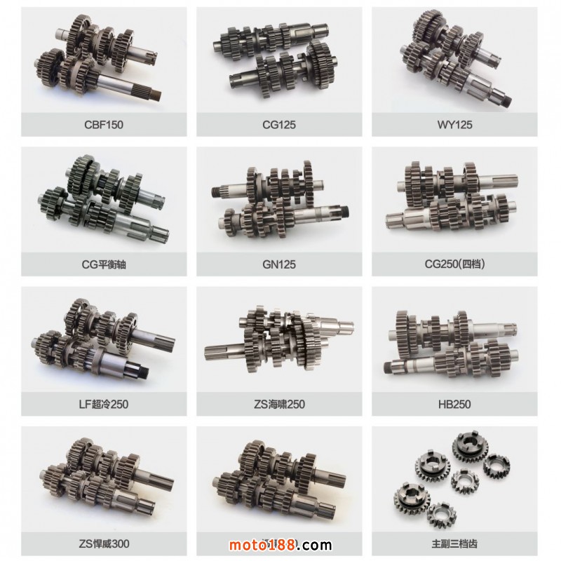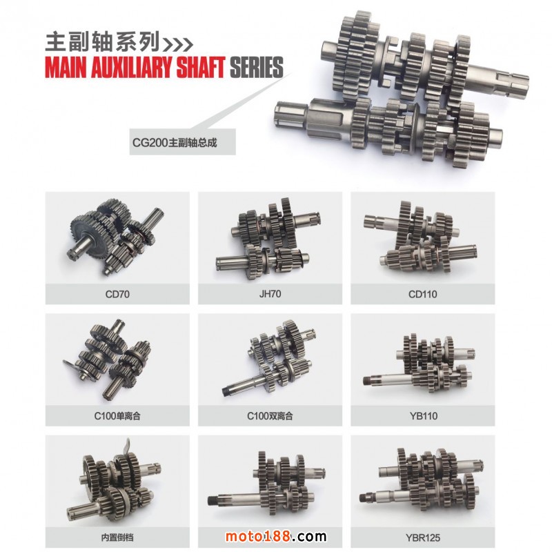 連桿、主副軸、曲軸、離合器、離合器總成、凸輪軸、搖臂、機油泵、缸體、缸頭、啟動軸、換擋軸