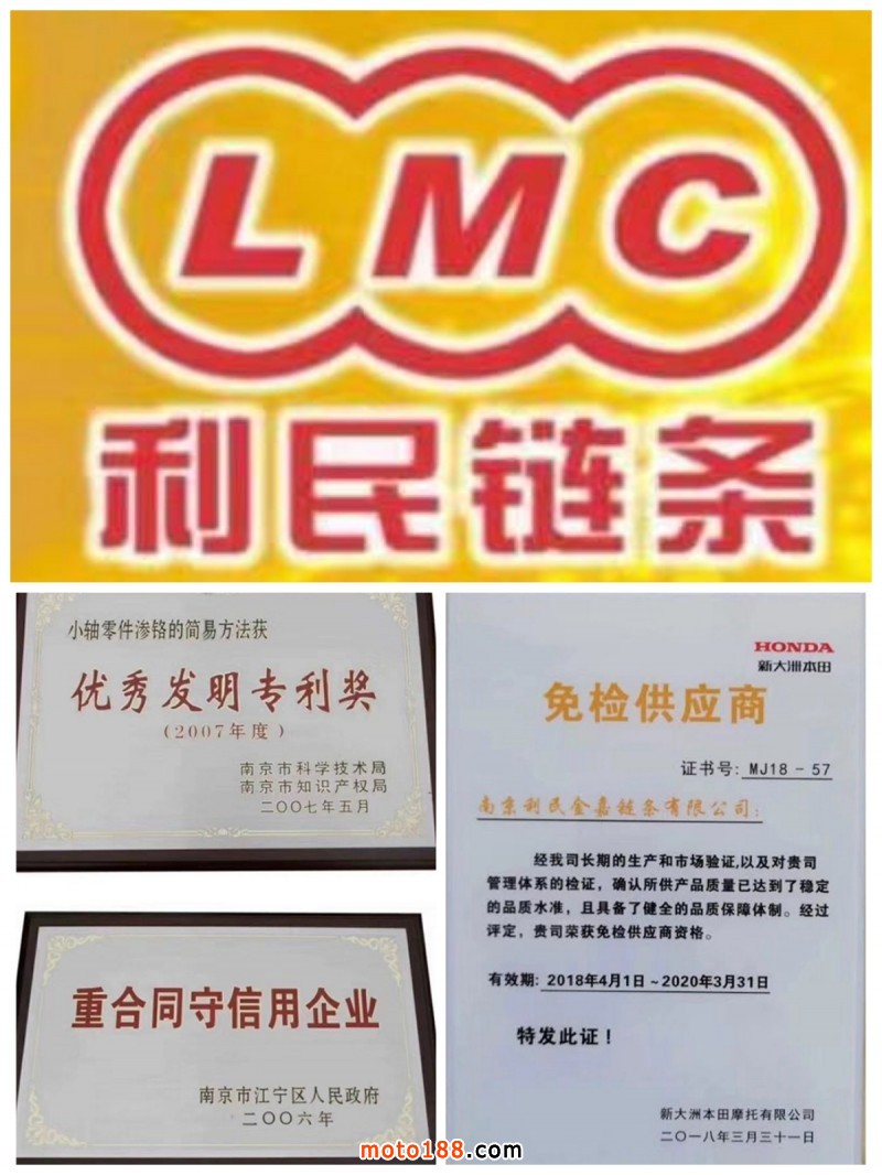 你想要的,都在LMC-南京利民鏈條。豪爵、鈴木、本田等一線品牌主要配套;本田系列二十年合作的認可;國內首家采用德國進口51CrV4原材料,一個認真耕耘了四十年的民族品牌!?。∧暇├矜湕l,擁有,就會得到更多......