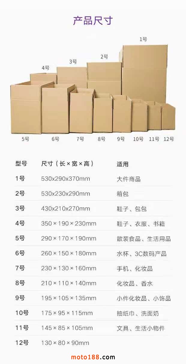 各種型號紙箱