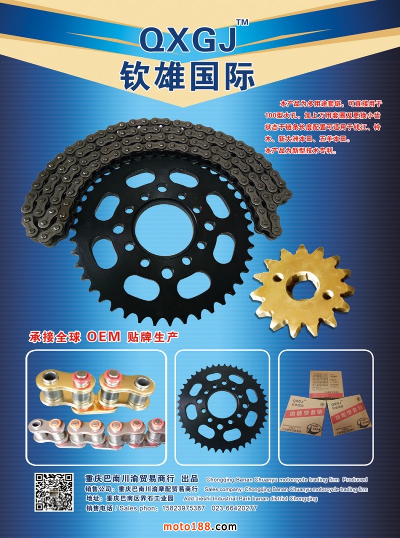 可直接用于100型大孔,加上萬用套圈及更換小齒狀態于鏈條長度配套可適用于錢江、鈴木、新大洲本田、五羊本田。承接全球OEM貼牌生產!