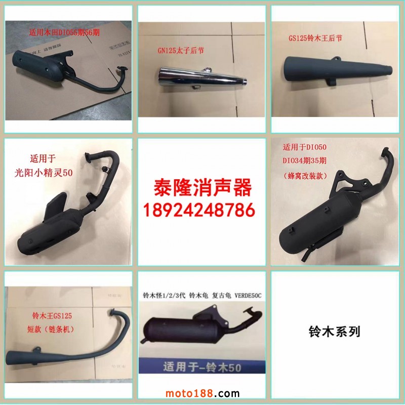 泰隆摩托車消聲器廠,專業生產摩托車消聲器,做工和質量都以出口為標準,有20年的生產經驗,有特殊產品可來樣品生產。可貼牌生產。歡迎新老客戶咨詢,合作共贏!