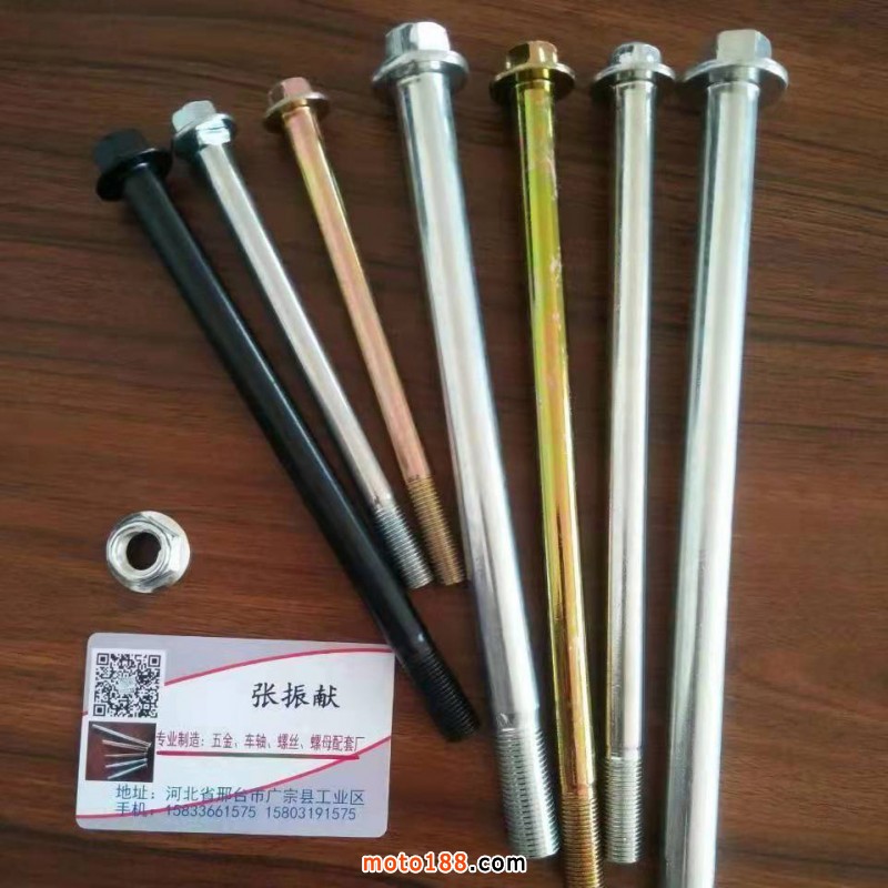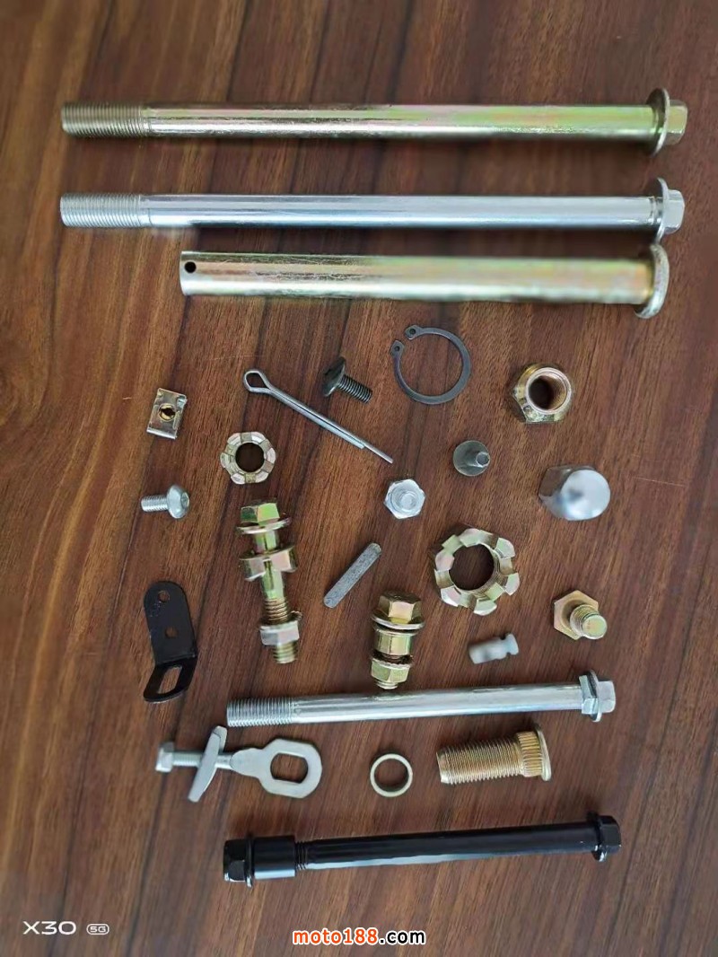 【河北小兒郎緊固件制造有限公司】專業生產摩托車前中后軸,以及零部件、小件、微標。輪轂螺絲,異形件定做,歡迎來電咨詢!