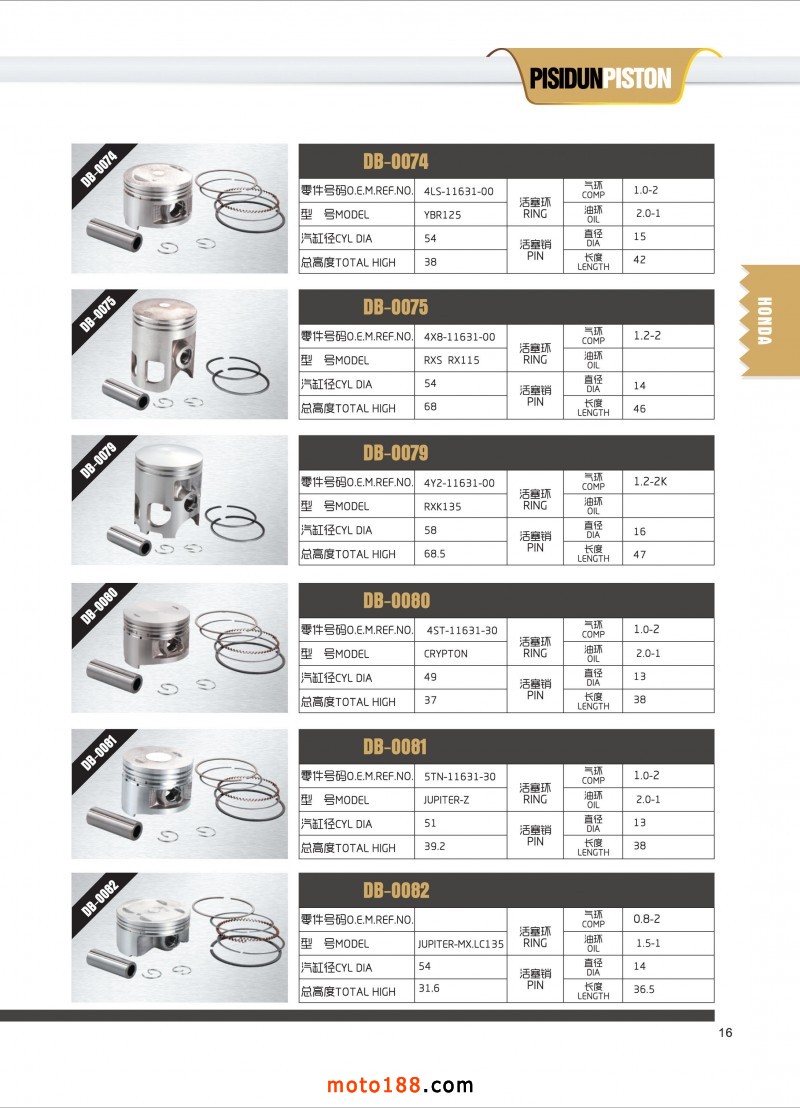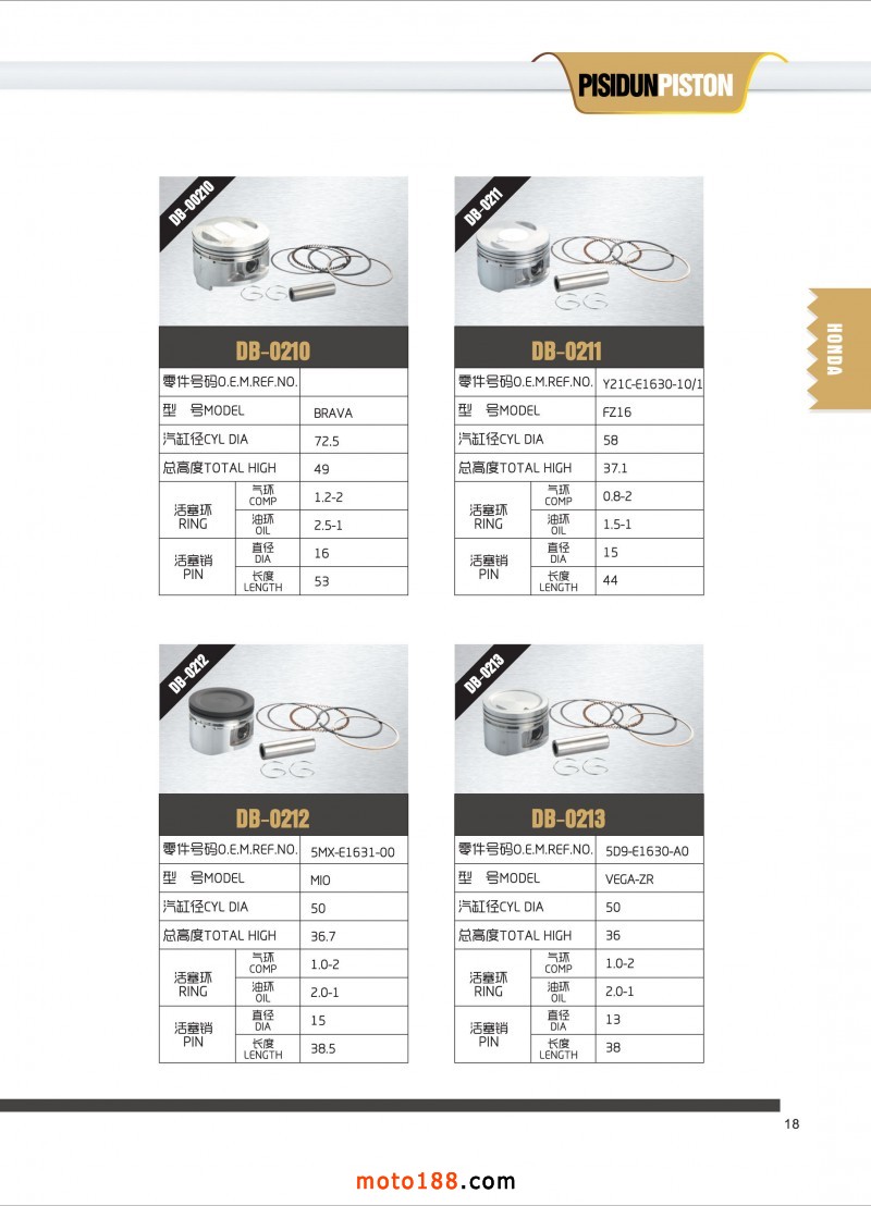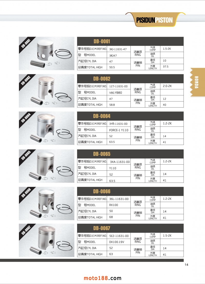 專業生產摩托車活塞,