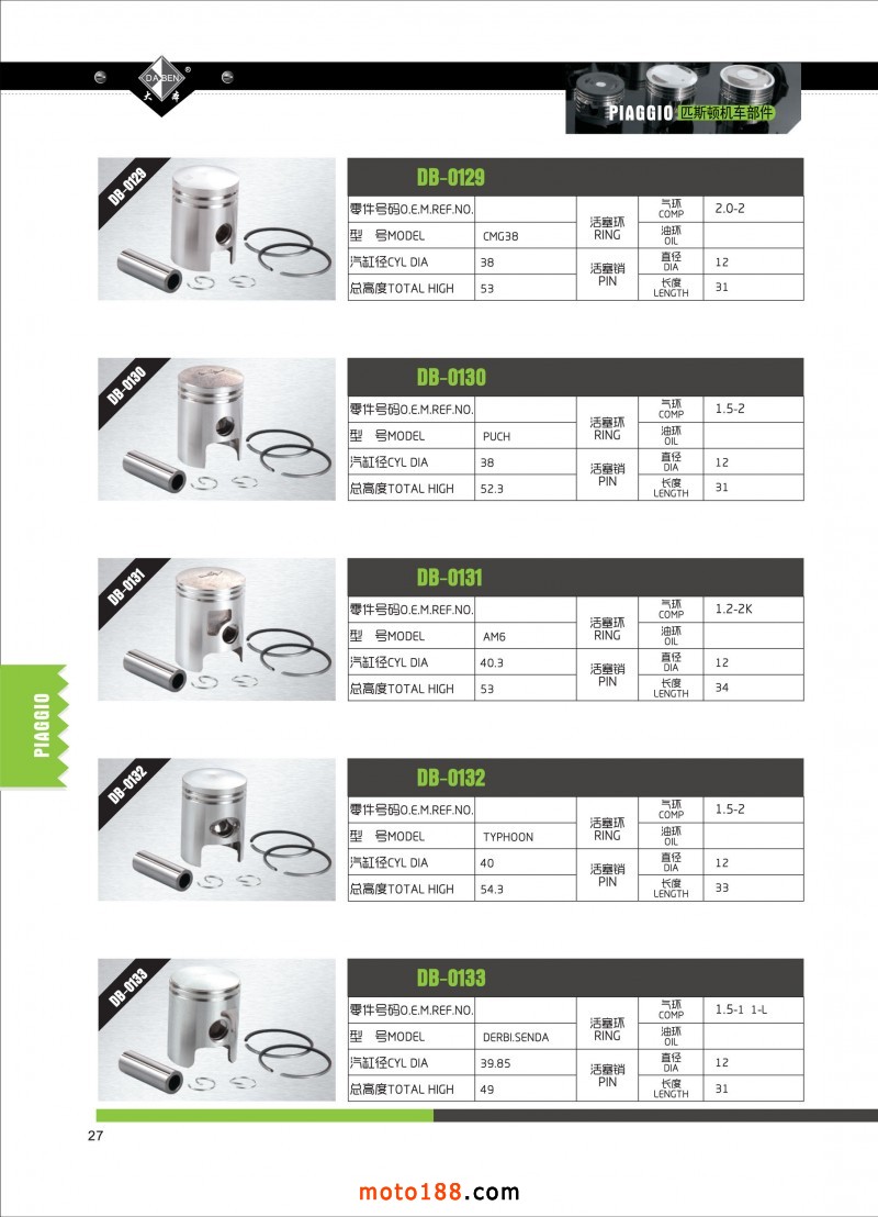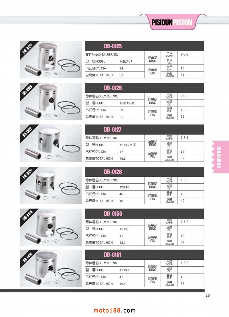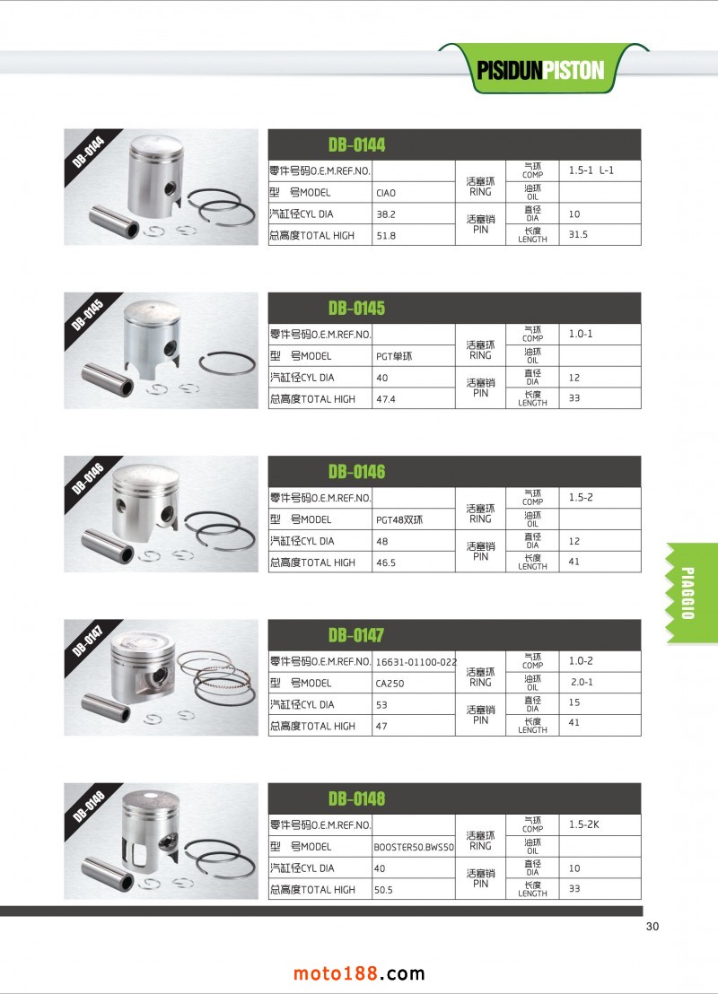 專業生產摩托車活塞,
