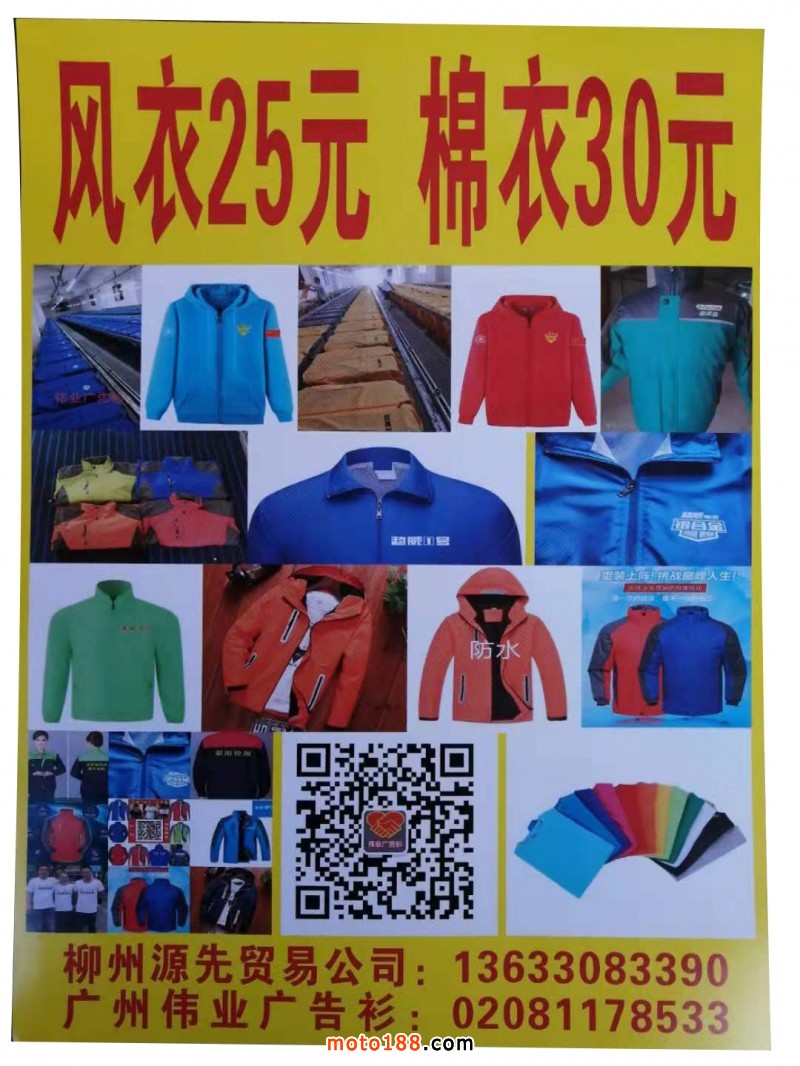 10元一件純棉T恤!25元一件風(fēng)衣!30元一件棉衣,偉業(yè)廣告衫專業(yè)設(shè)計(jì)生產(chǎn)銷售高中低檔!促銷服,團(tuán)隊(duì)服,棉服,工衣,聚會衫!校服班服,職業(yè)裝,勞保服,球衣,廣告禮品等!廣州,廣西,重慶,無錫,鄭州,有大型印花廠,出貨快,質(zhì)量好,歡迎新老客戶定制!微信電話同號:13633083398廣州偉業(yè)廣告衫,柳州市源先貿(mào)易有限公司,袁生