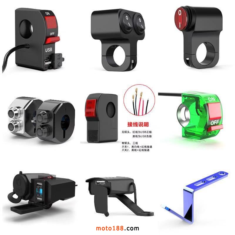 摩托車電動車手機充電器件、摩托車騎士裝備、摩托車LED燈飾等