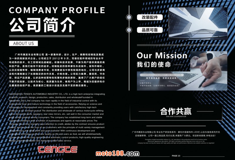 廣州騰發車業有限公司,專營:摩托改裝件,LED大燈,后平叉,剎車盤,開關,后視鏡等等,公司一直以高品質,性價比高,來服務廣大群眾。歡迎新老顧客,來電洽談!