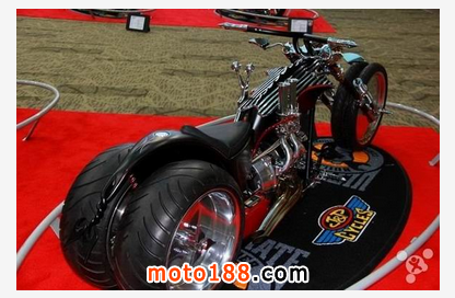 Twisted Evil摩托車采用的是霸氣的四輪設(shè)計(jì),碩大的雙后輪給人一種十分強(qiáng)悍的感覺。車身整體采用的是黑銀相間的配色,大量銳利的裝飾顯得侵略性十足。從這點(diǎn)來說,Twisted Evil確實(shí)蠻邪惡的。