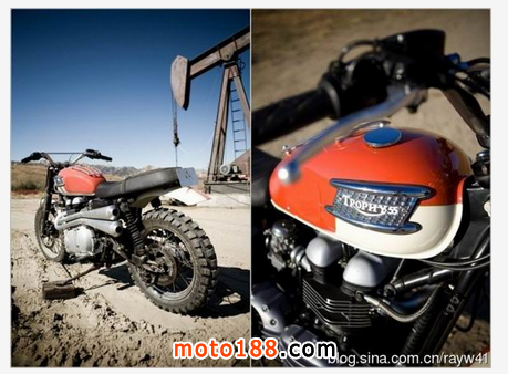 這輛以Triumph Scrambler為改裝基礎車的Trophy 55,整個改裝工程交由米國當地的Jomo Racing所操刀,除了承襲Scrambler的風格之外,但經過不少部件的更換,如換上Desert Fox越野車把、排氣管、特殊訂制的鋁合金前號碼牌與投射式大燈、前后擋泥板、油箱支架與油箱上的Trophy 55專用銘牌等等。而在車架的電瓶護蓋上,改裝廠則還把Bud Ekins歷年來贏得冠軍的全部標示出來!